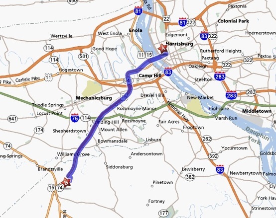 From Harrisburg, drive towards Dillsburg about 10 miles.