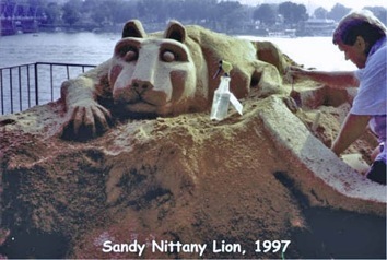 Here's my "sandy" Penn State Nittany Lion I built for the City of Harrisburg during the Kipona Festival in 1997. The sand sculpture was half completed at this time, and that's me on the right "posing" for this picture.... - Bill