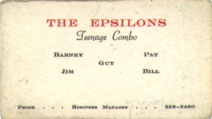 The band played mostly popular British and American rock songs, but played in the Epsilon style, i.e. loud, driving dance beat, “wall of sound” style, never attempting to replicate the original recording. Another item, which distinguished the Epsilons from other bands in the area, was choreography. The band copied “moves” from Paul Revere and the Raiders (as seen on the TV show, “Where The Action Is”) and used them while playing songs.