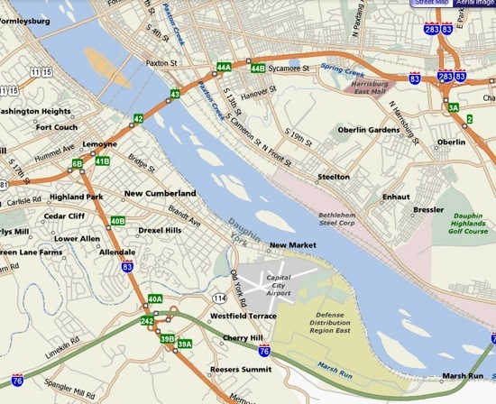 From Harrisburg, via the 83, going south, cross the bridge and take the Lemoyne exit.